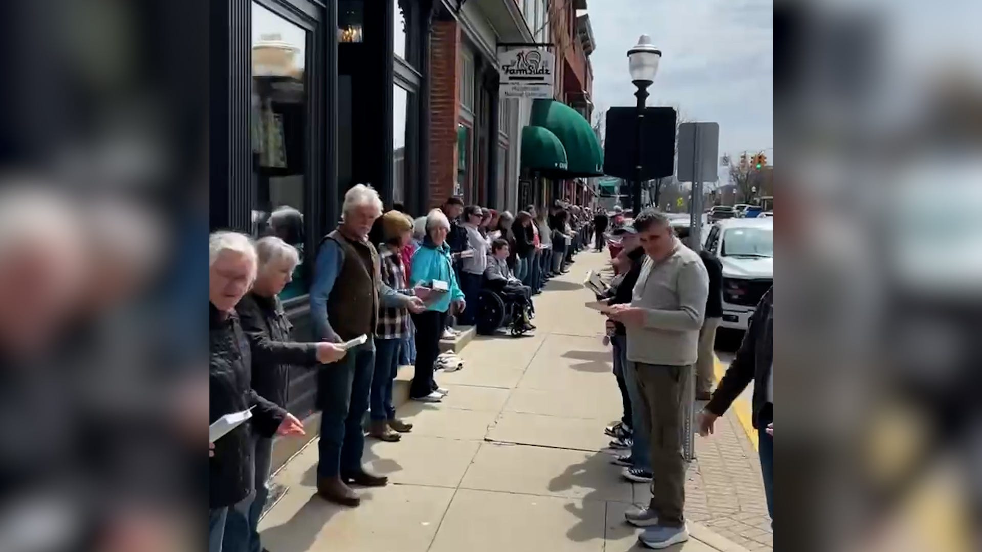 A human chain strikes a Michigan bookstore one guide at a time