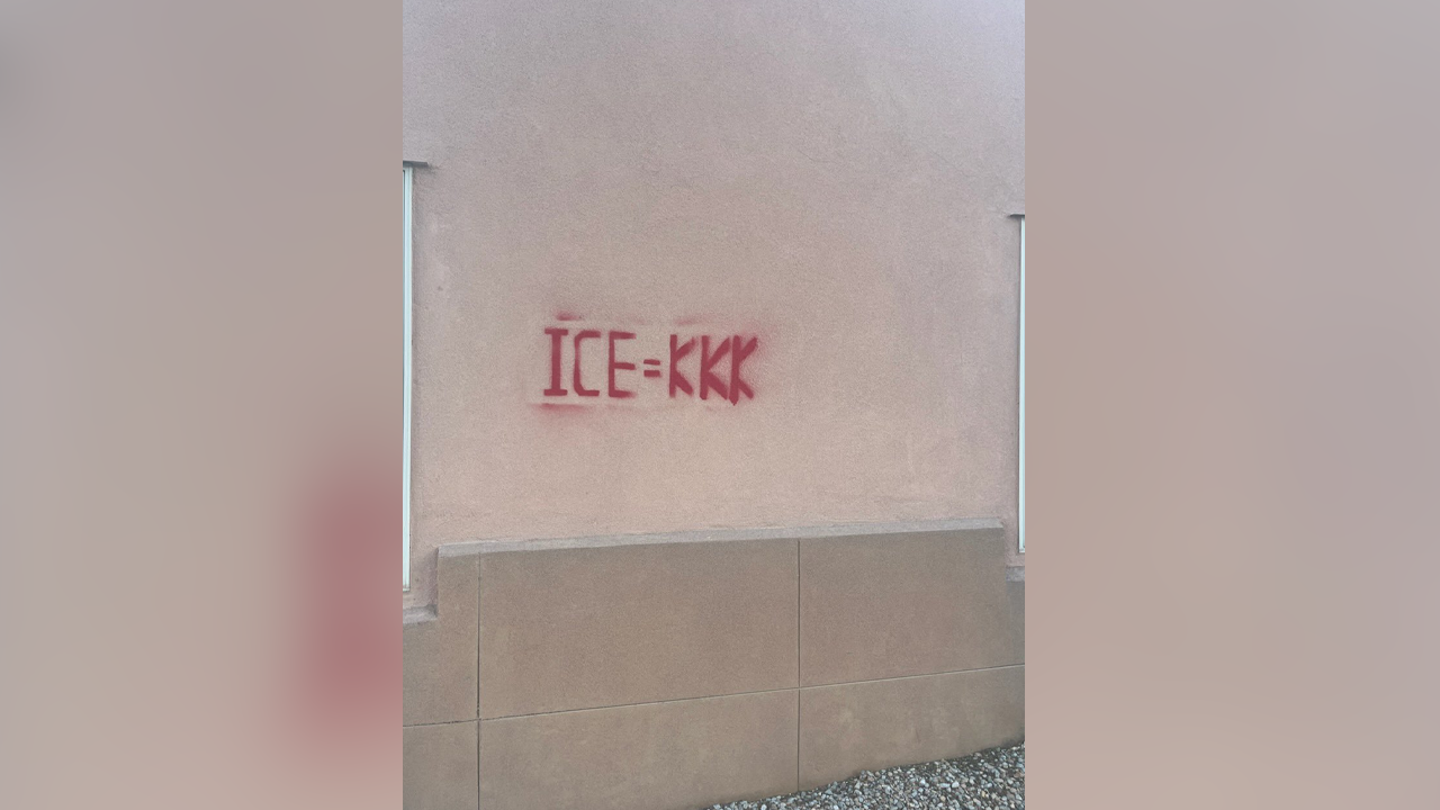 The Republican Occasion of the chairman of the New Mexico Amy Barela shared the pictures in a submit on X and claimed that the alleged vandalism was’ a deliberate act of arson wherein additionally spraying the phrases’ Ice = KKK ‘.
