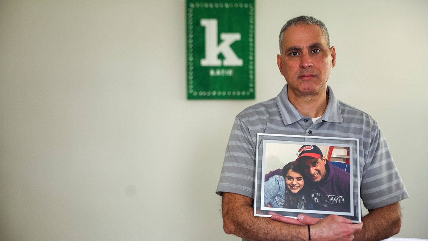 Joe Abraham holds a photograph of himself together with his 20-year-old husband, Katie Abraham, at his household’s residence in Glenview, Illinois, on September 10, 2025. (Stacey Wescott/Chicago Tribune/Tribune Information Service by way of Getty Photographs)