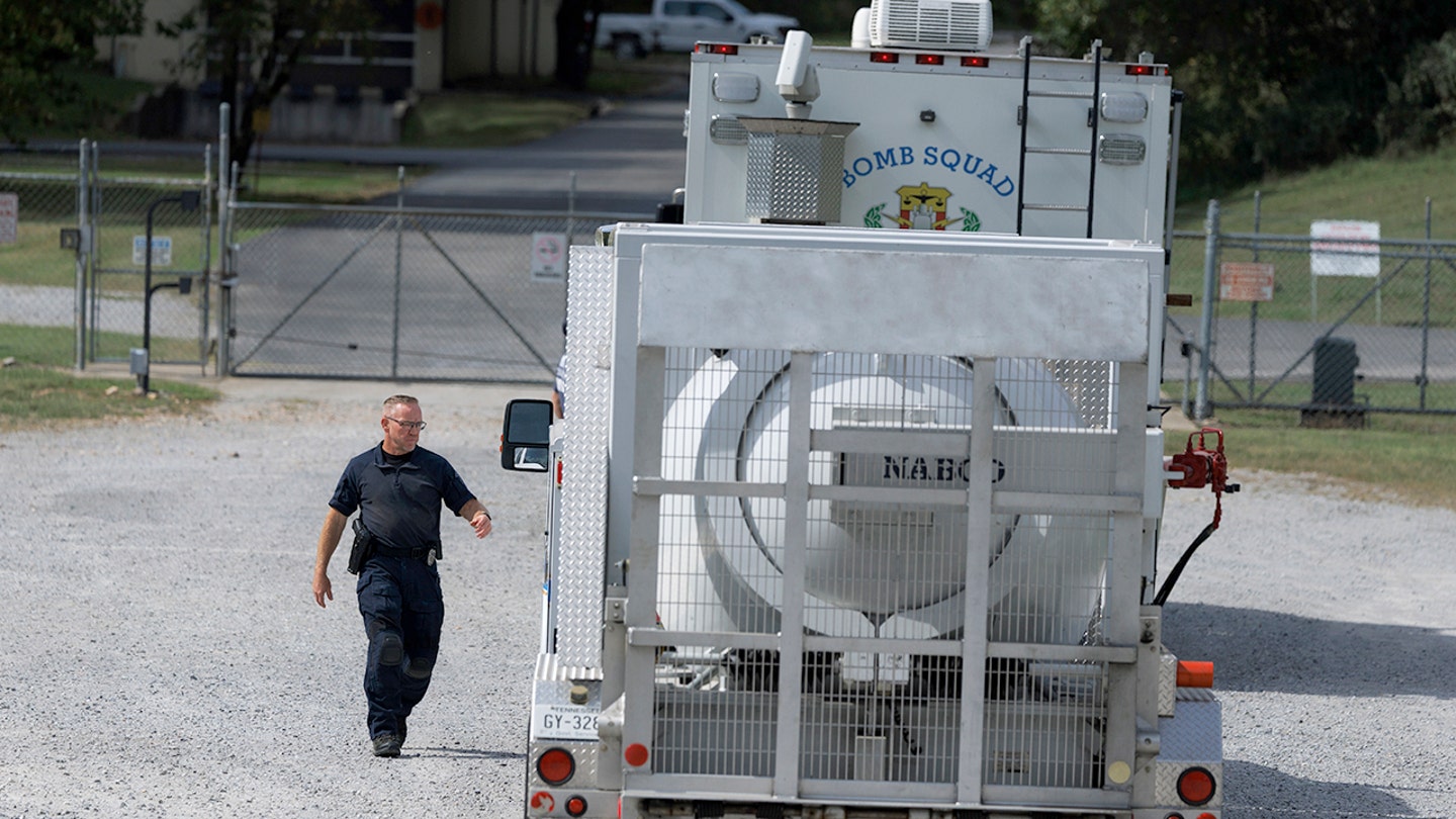 Metropolitan Nashville Police Division bomb squad automobiles arrive at Correct Energetic Techniques on October 10, 2025. (Brett Carlsen/Getty Photos)