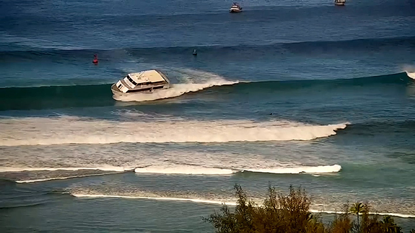 “The invention operator reported that two giant waves have been disrupted his course and that he misplaced the propulsion as quickly because the ship was aimed on the floor,” mentioned the coast guard. “Sector Honolulu Command Middle Watchstanders obtained a report on Saturday at 8.25 am that the invention ran round 60 ft outdoors of Kewalo Basin Harbor. The captain of the ship and one crew member have been on board.”