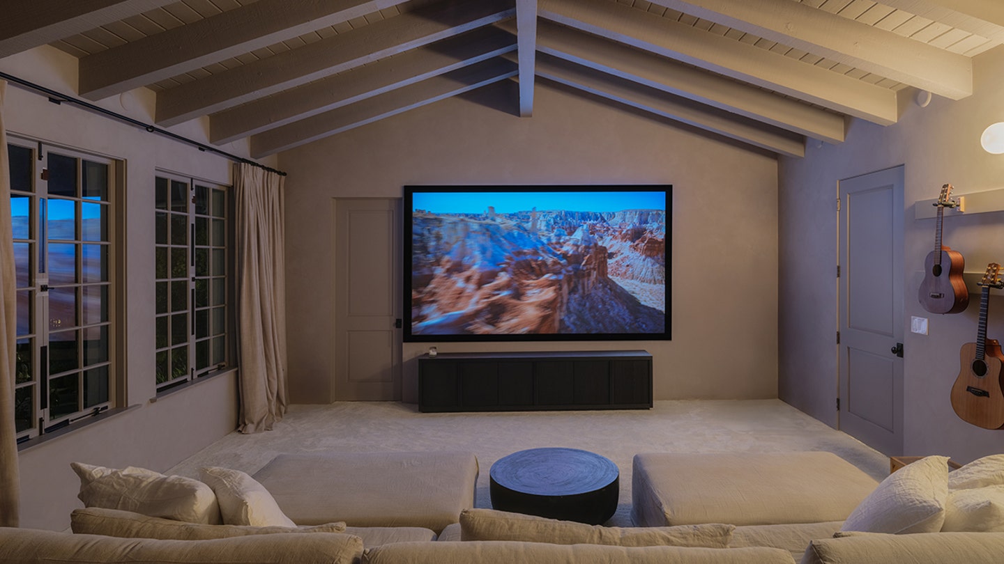 The home additionally has a screening room with a big tv. (Tyler Hogan)