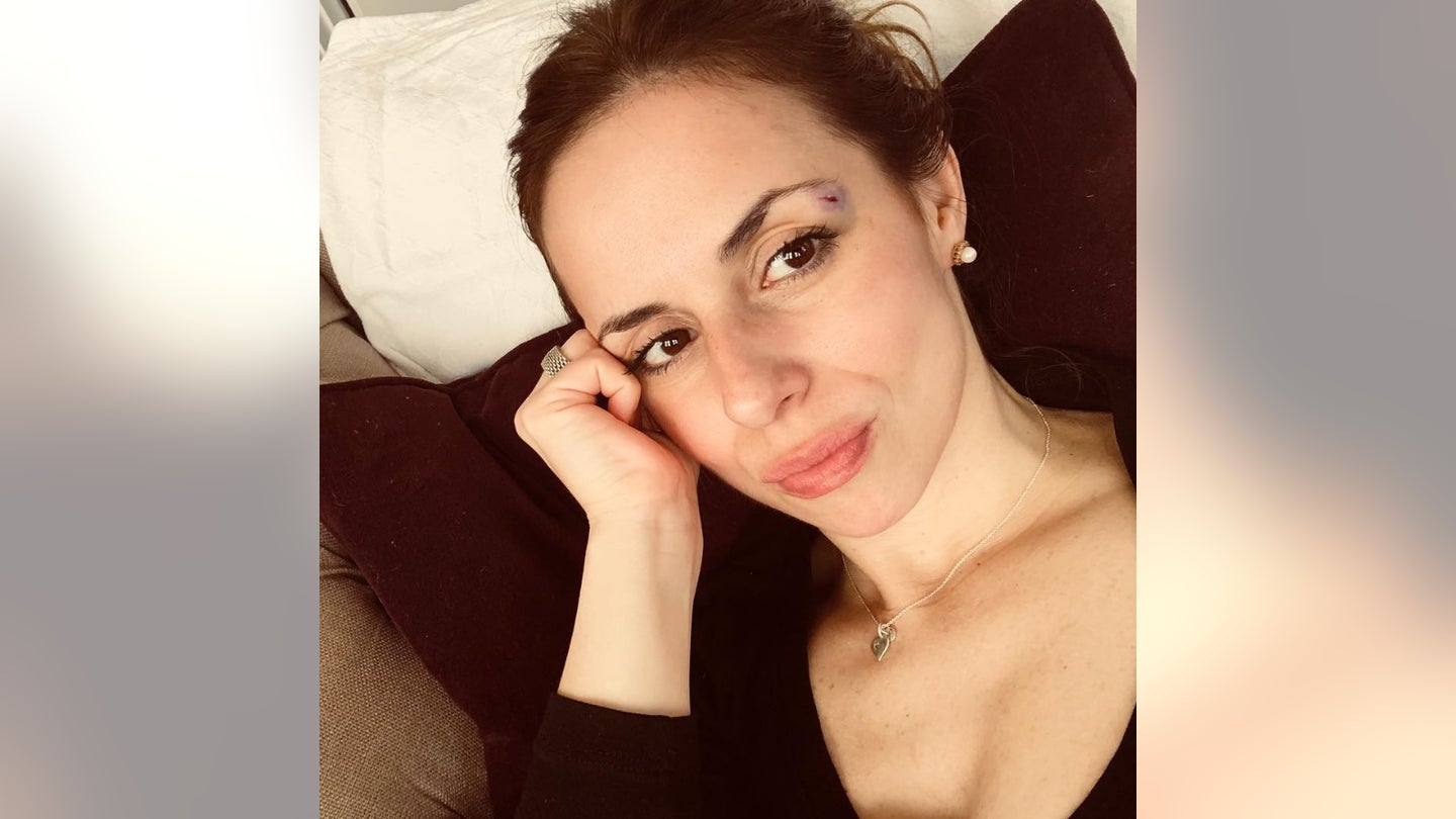 Ana Walshe wrote in an Instagram submit on Might 21, 2018: “Delicate concussion, bruised hip and a lower…#vulnerability” as she captioned a photograph of her with a lower above her eye. (Ana Walshe/Instagram)