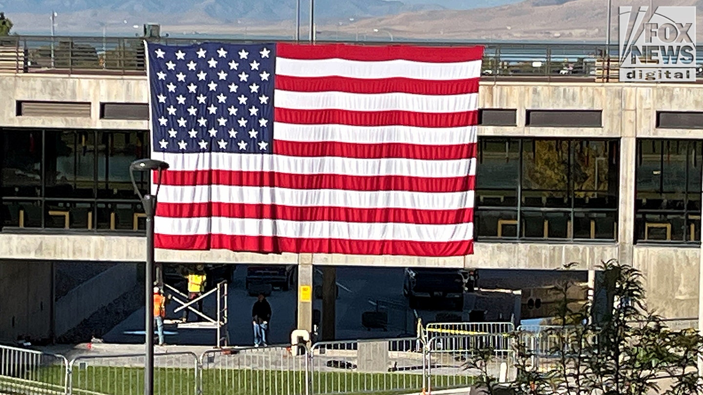 A flag now hangs on the spot the place Turning Level USA founder Charlie Kirk was shot and killed. (Stepheny Worth/Fox Information Digital)