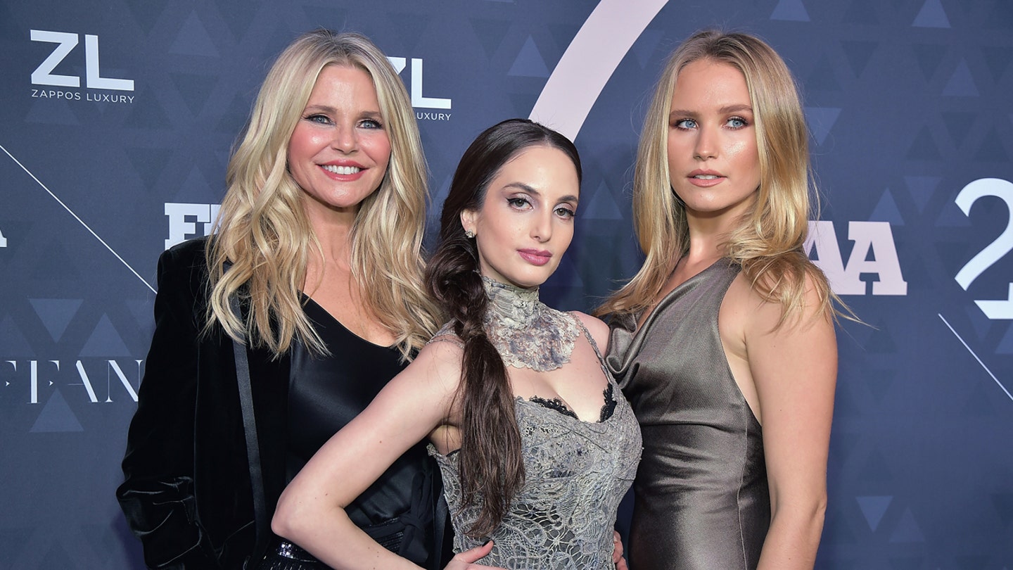 Christie Brinkley, left, along with her daughters, singer-songwriter Alexa Ray Joel and mannequin Sailor Lee Brinkley-Cook dinner, proper. (Theo Wargo/Getty Photographs)
