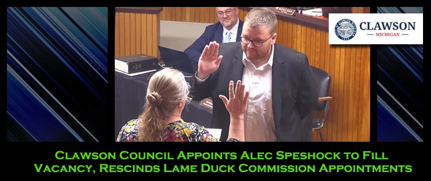 Clawson Council Appoints Alec Speshock to Fill Vacancy, Rescinds Lame Duck Commission Appointments
