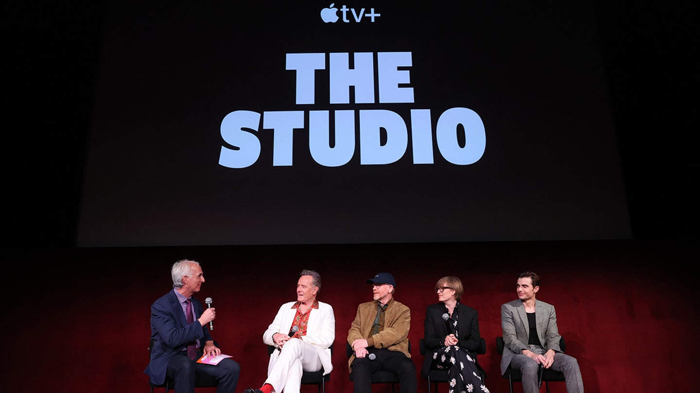 Ron Howard, Center, throughout a press occasion for the Apple TV + present “The Studio” earlier this yr. (Eric Charbonneau/Apple TV+ by way of Getty photos)