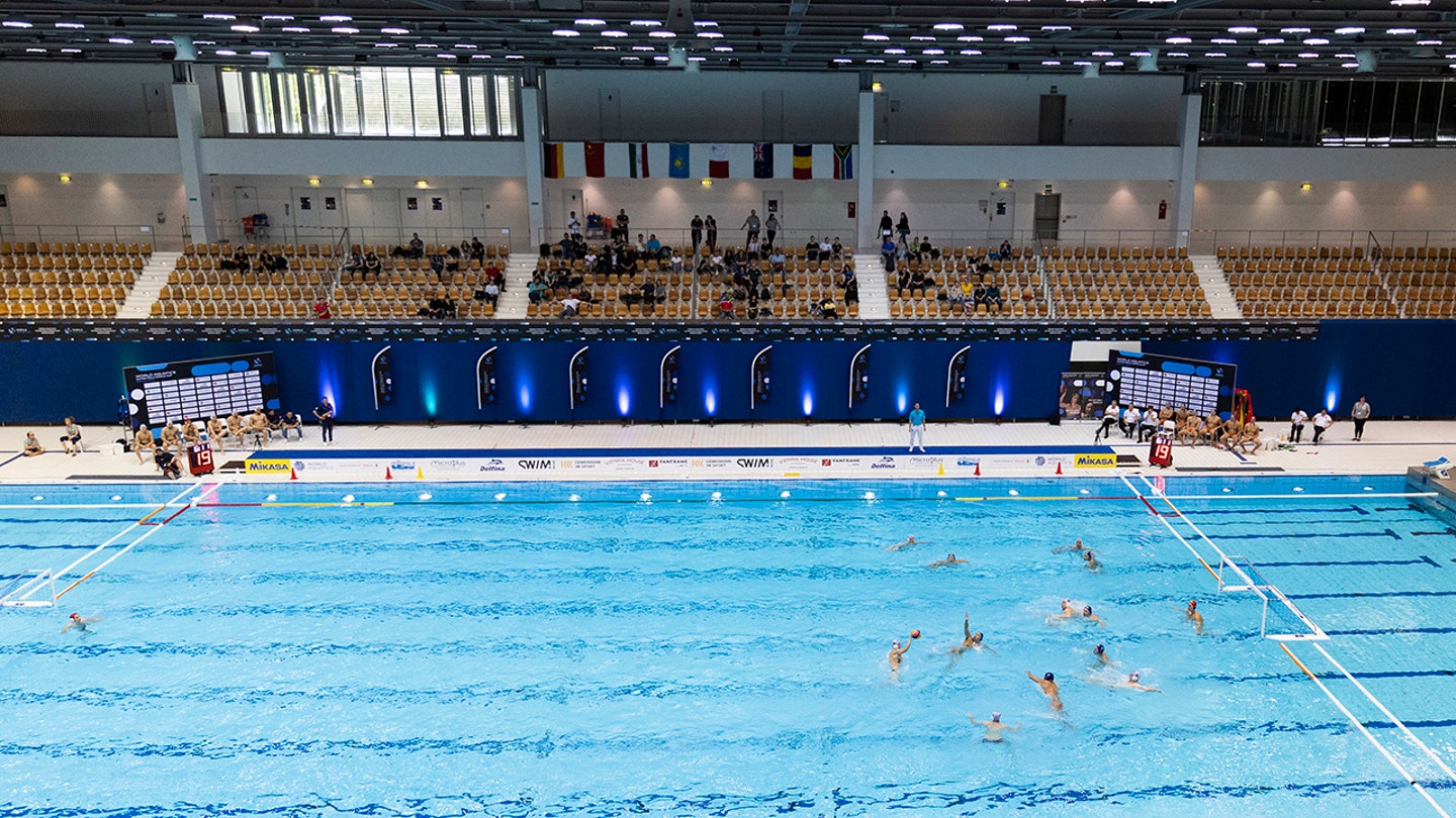 Common view in the course of the World Aquatics Males’s Water Polo World Cup Division 2 Qualifying Remaining Match Romania vs China at Schwimm- und Sprunghalle im Europa-Sportpark (SSE) on Might 7, 2023 in Berlin, Germany. (Maja Hitij/Getty Photographs)