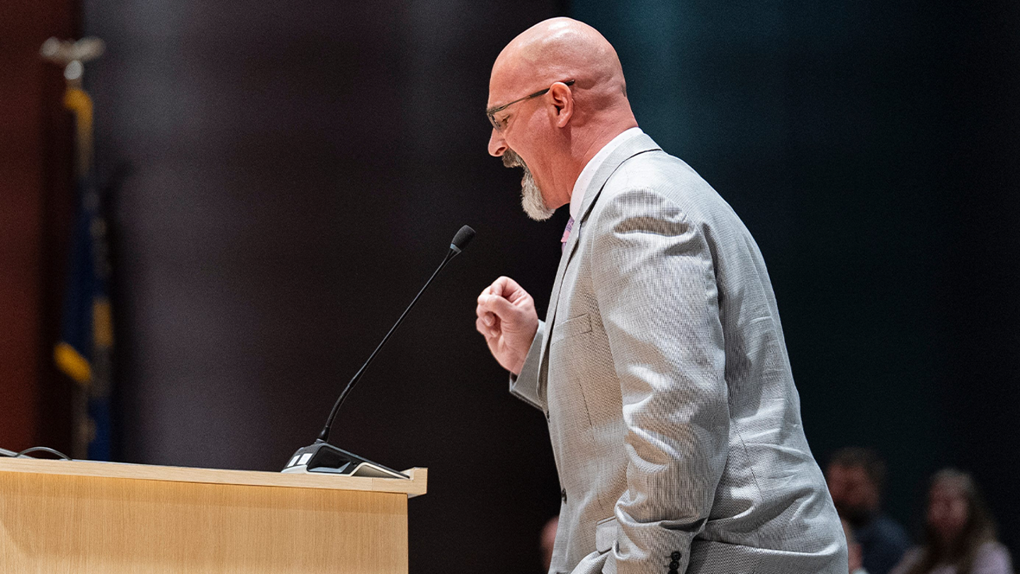 Kyle Hedquist supplies testimony throughout the Salem Metropolis Council’s particular assembly to rethink his reappointment to 2 public security commissions on January 7, 2025. (Kevin Neri/Statesman Journal/USA At the moment Community through Imagn Pictures)