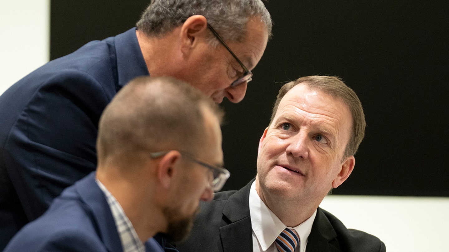 Lawyer Richard Novak, prime, speaks with Christopher Ballard, basic counsel of the Utah County Lawyer’s Workplace, throughout a listening to for Tyler Robinson, charged with the homicide of Charlie Kirk, in Fourth District Court docket in Provo, Utah, on December 11, 2025. (Rick Egan/The Salt Lake Tribune by way of Pool)