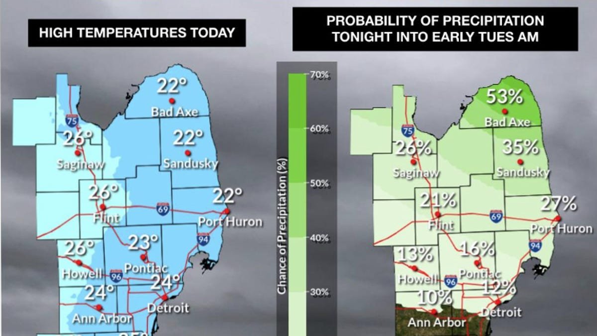 A uncommon winter customer is coming to Detroit on Tuesday: temperatures above freezing.