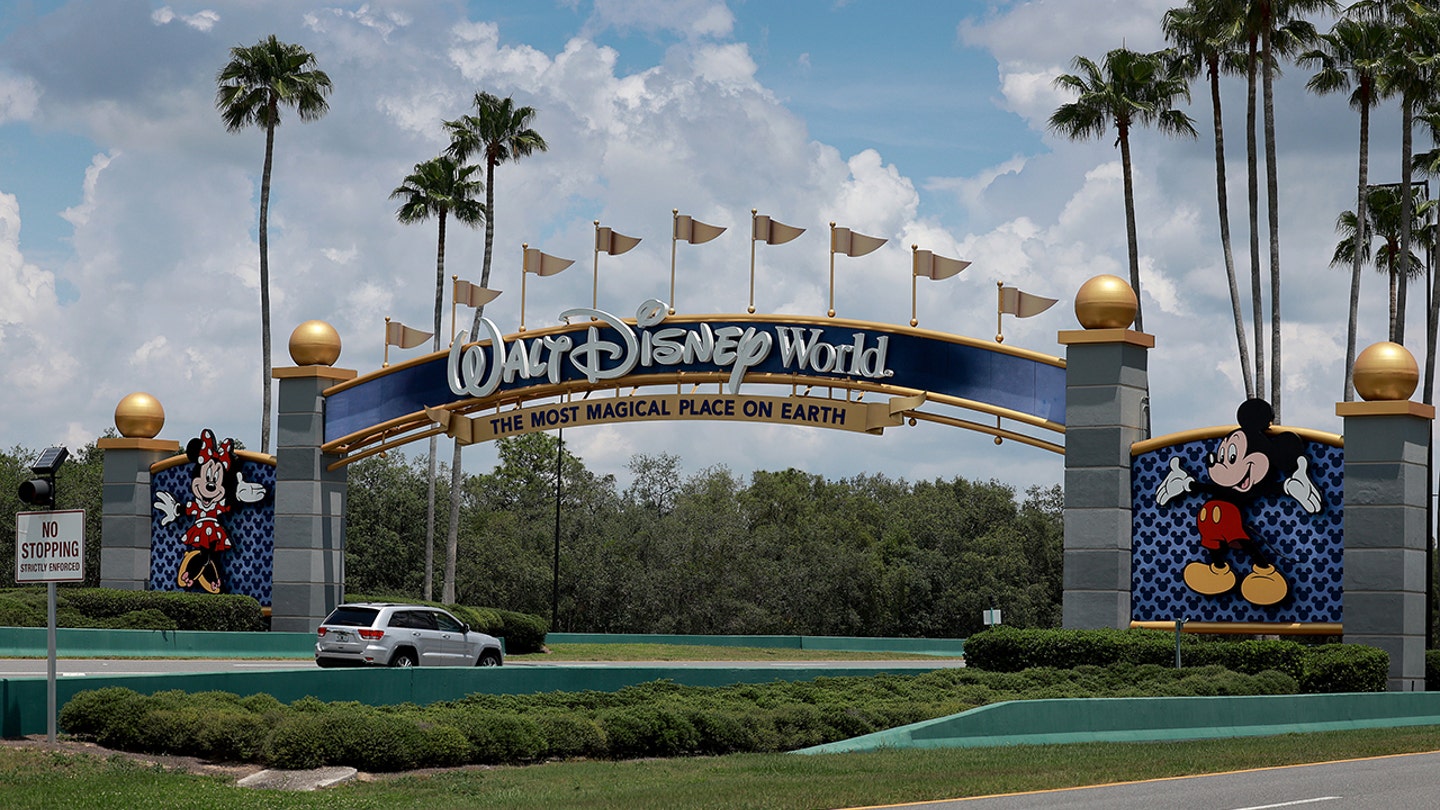 An indication at an entrance to Walt Disney World in Orlando, Florida. (Joe Raedle/Getty Photographs/Getty Photographs)