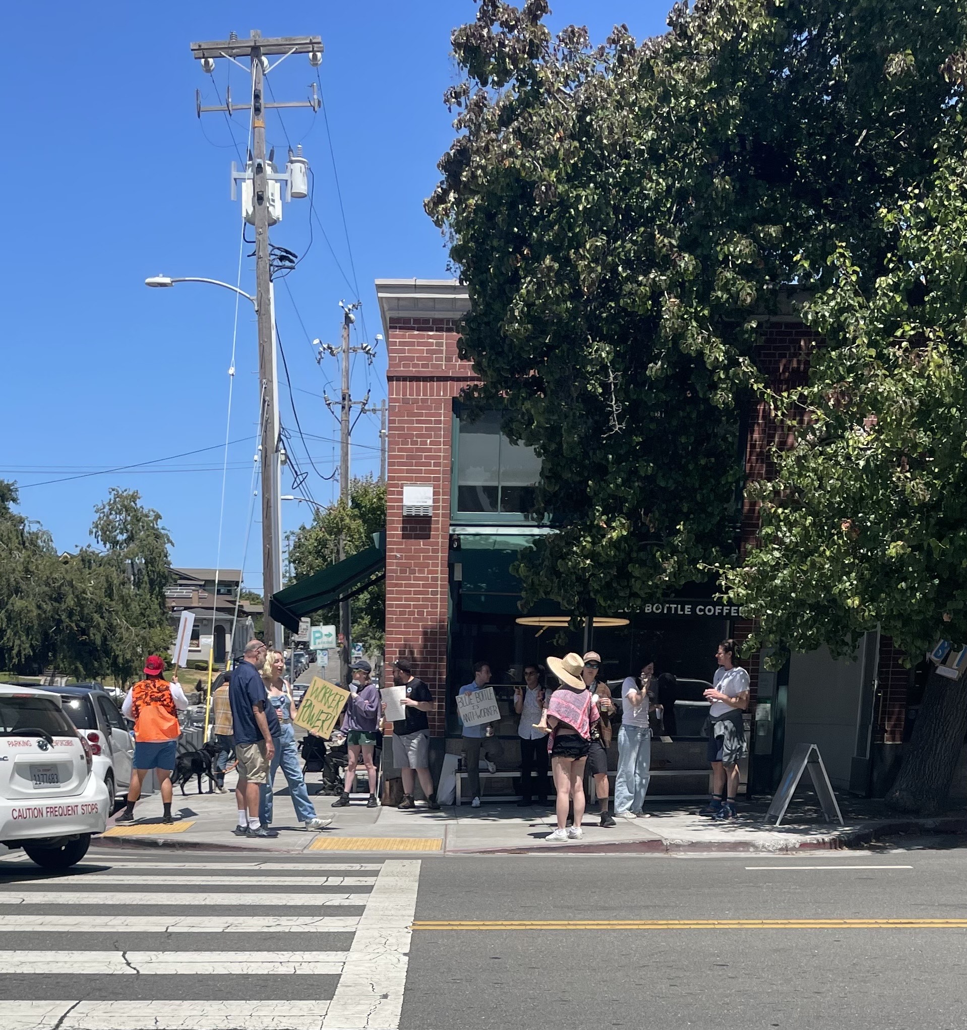 After the deadline had handed by Blue Bottle or Nestlé with no phrase, staff took to the streets on June 21. Small rallies had been held exterior any location in East Bay the place staff and the general public had been certain collectively in a present of solidarity. For Lauren England, worker on the Berkeley location, demonstrations reminiscent of these present why commerce unions such because the BBIU materials.