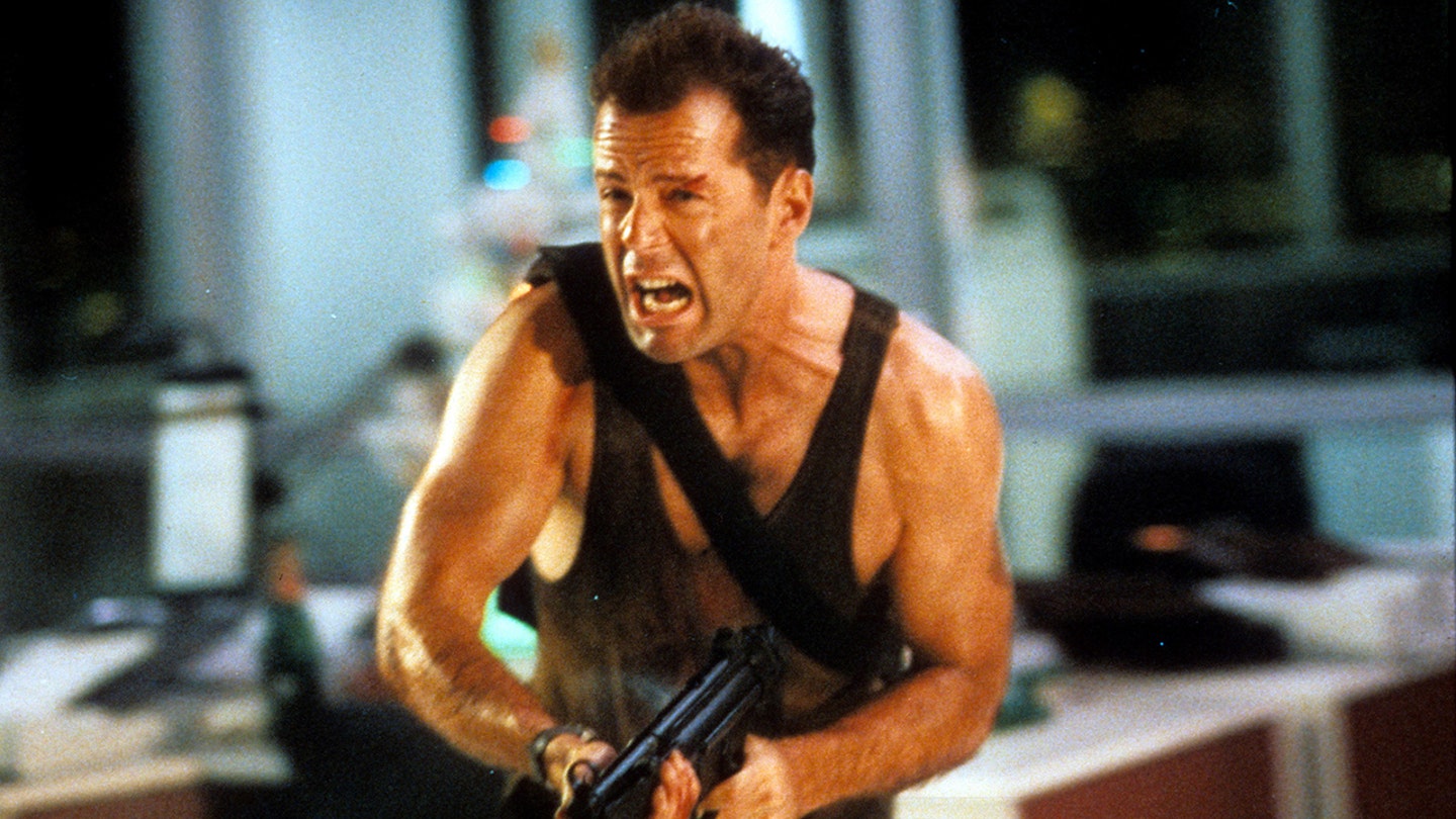 Bruce Willis runs with an automated weapon in a scene from the movie “Die Arduous” in 1988. (Twentieth-century Fox/Getty pictures)