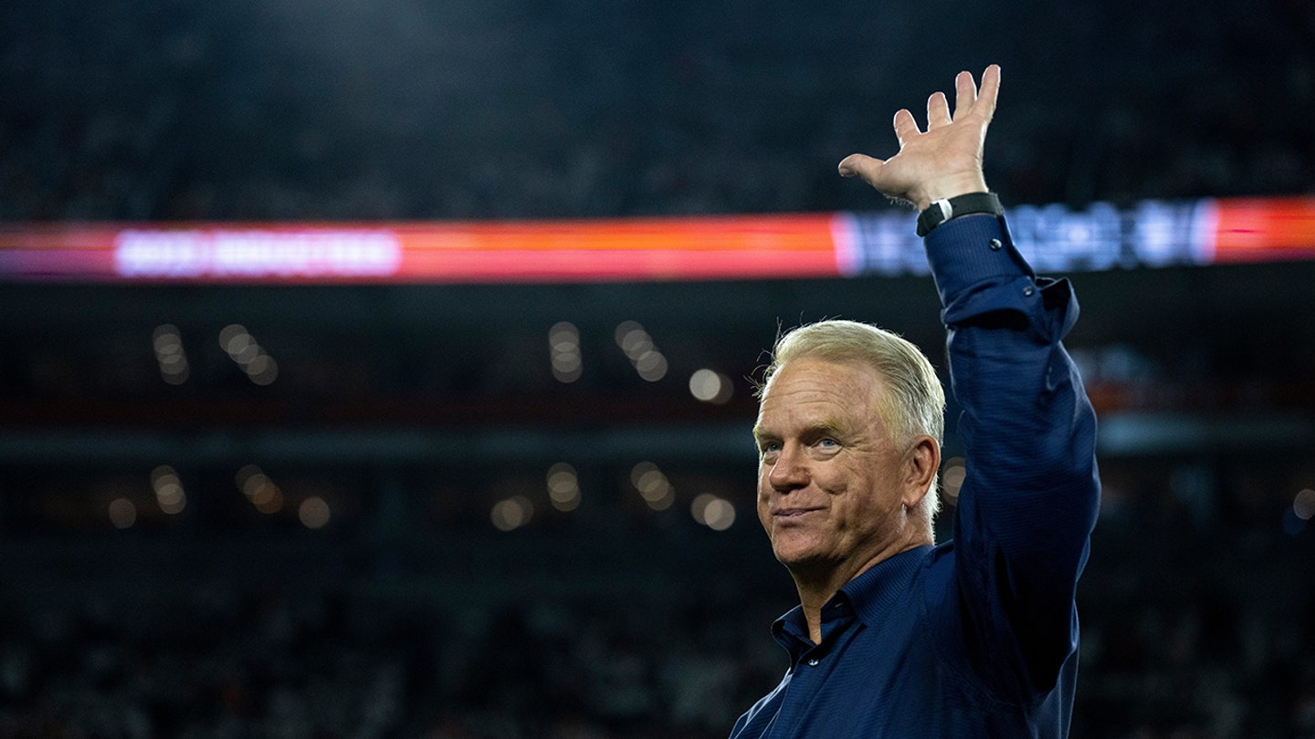 Boomer Esason, former Bengals Quarterback, waves earlier than he was introduced throughout the break as a Ring of Champions inducentee at Paycor Stadium in Cincinnati, Ohio, on September 25, 2023. (Albert Cesare/The Enquirer/USA At present Community)