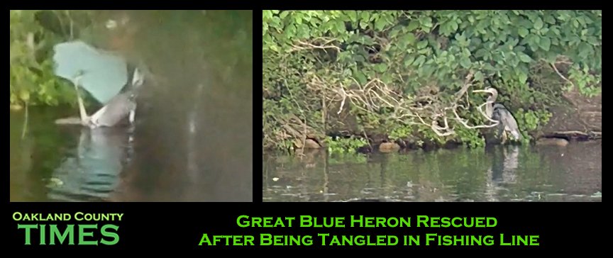 Great Blue Heron Rescued After Being Tangled in Fishing Line