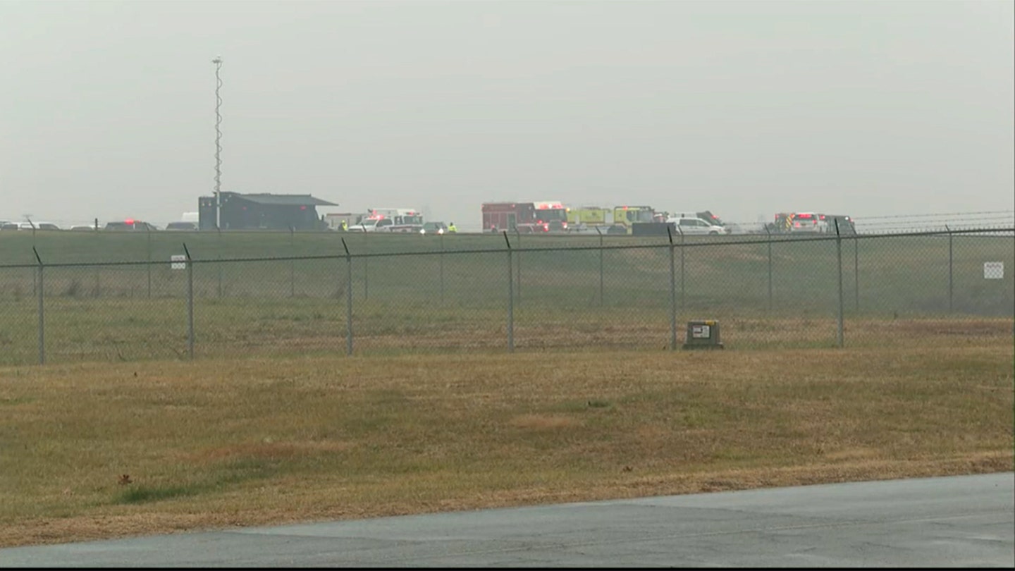 The scene reveals a airplane crash at Statesville Regional Airport in Statesville, North Carolina. (WJZY-TV)