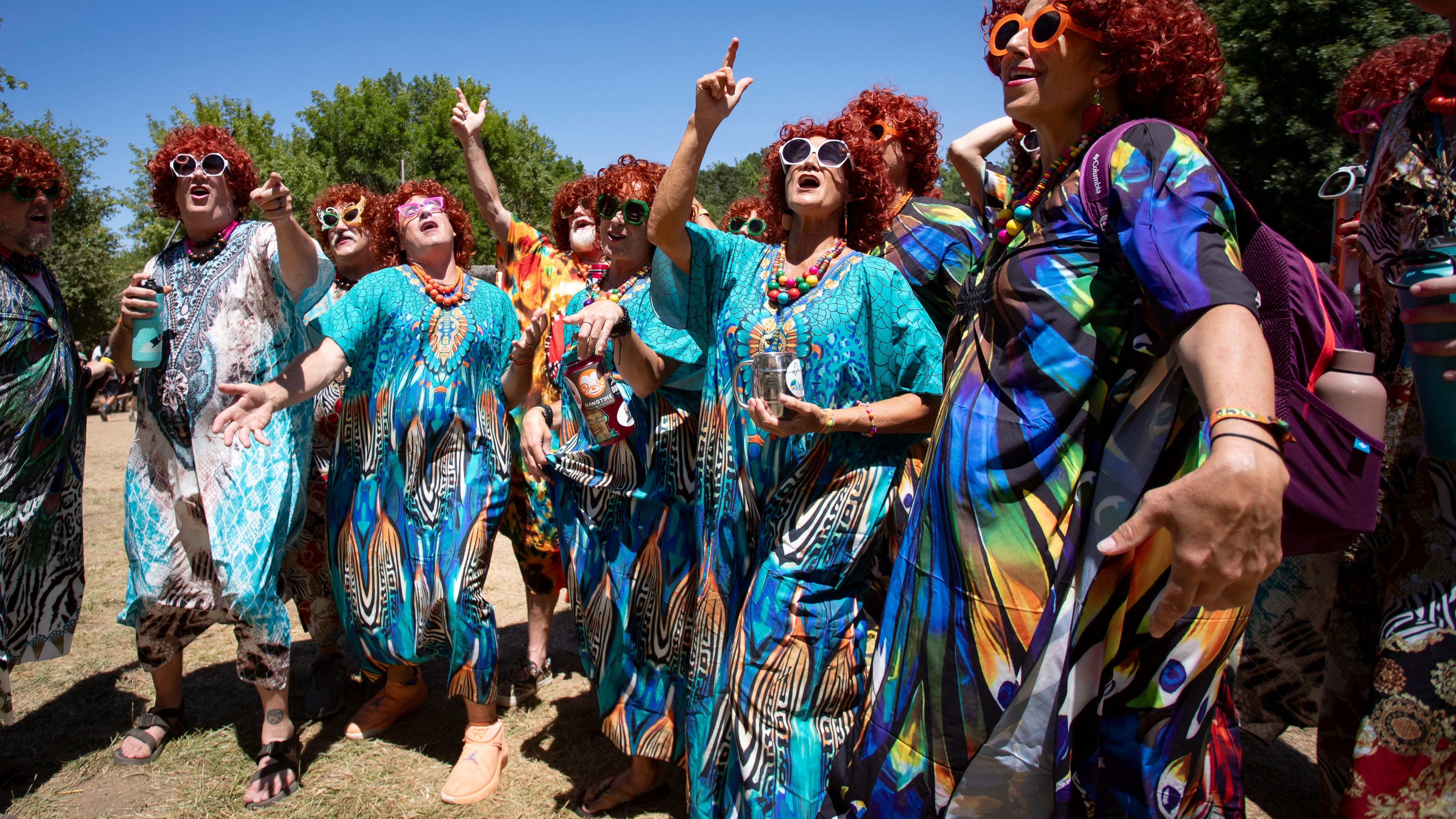 Contributors in 2024 Oregon Nation Truthful come within the spirit of Truthful, similar to these Helen Ropers from the Sitcom “Three’s Firm”.
