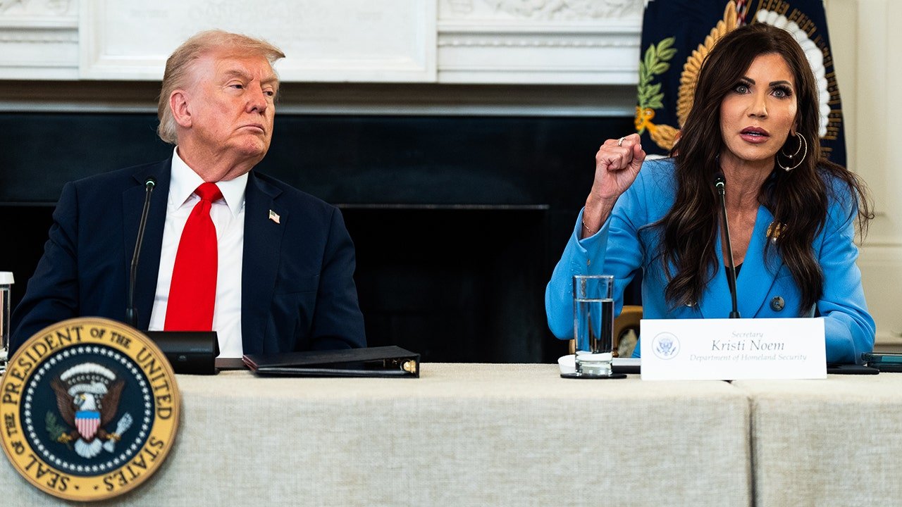 Secretary of Homeland Safety Kristi Noem speaks throughout a roundtable dialogue within the State Eating Room of the White Home on Wednesday, October 8, 2025. A brand new report from economists this week pointed to internet destructive migration for the primary time in many years amid Trump administration enforcement. (Demetrius Freeman/The Washington Publish by way of Getty Photographs)