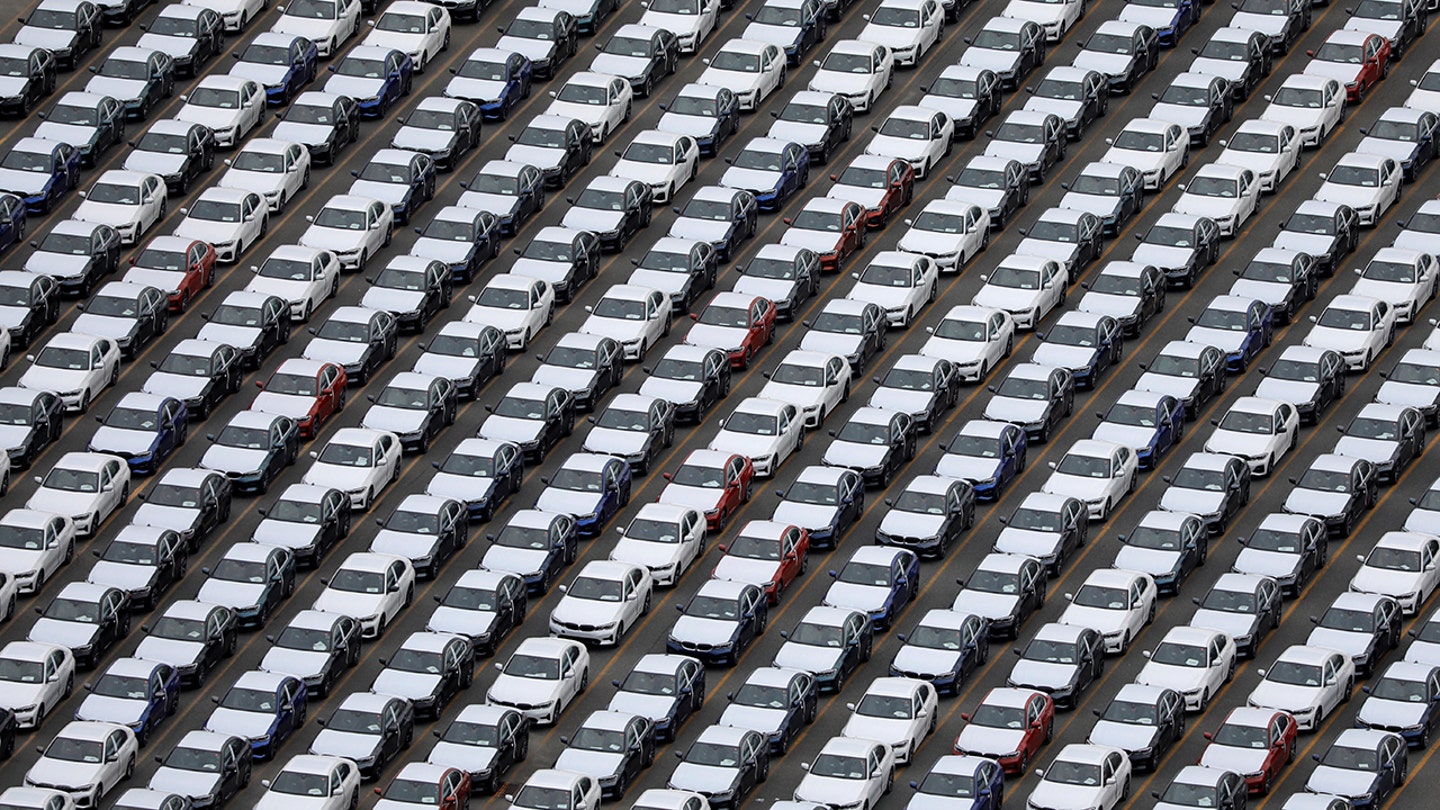 Automobiles are parked on August 21, 2021 within the harbor in Bayonne, NJ. (Reuters/Andrew Kelly/File)