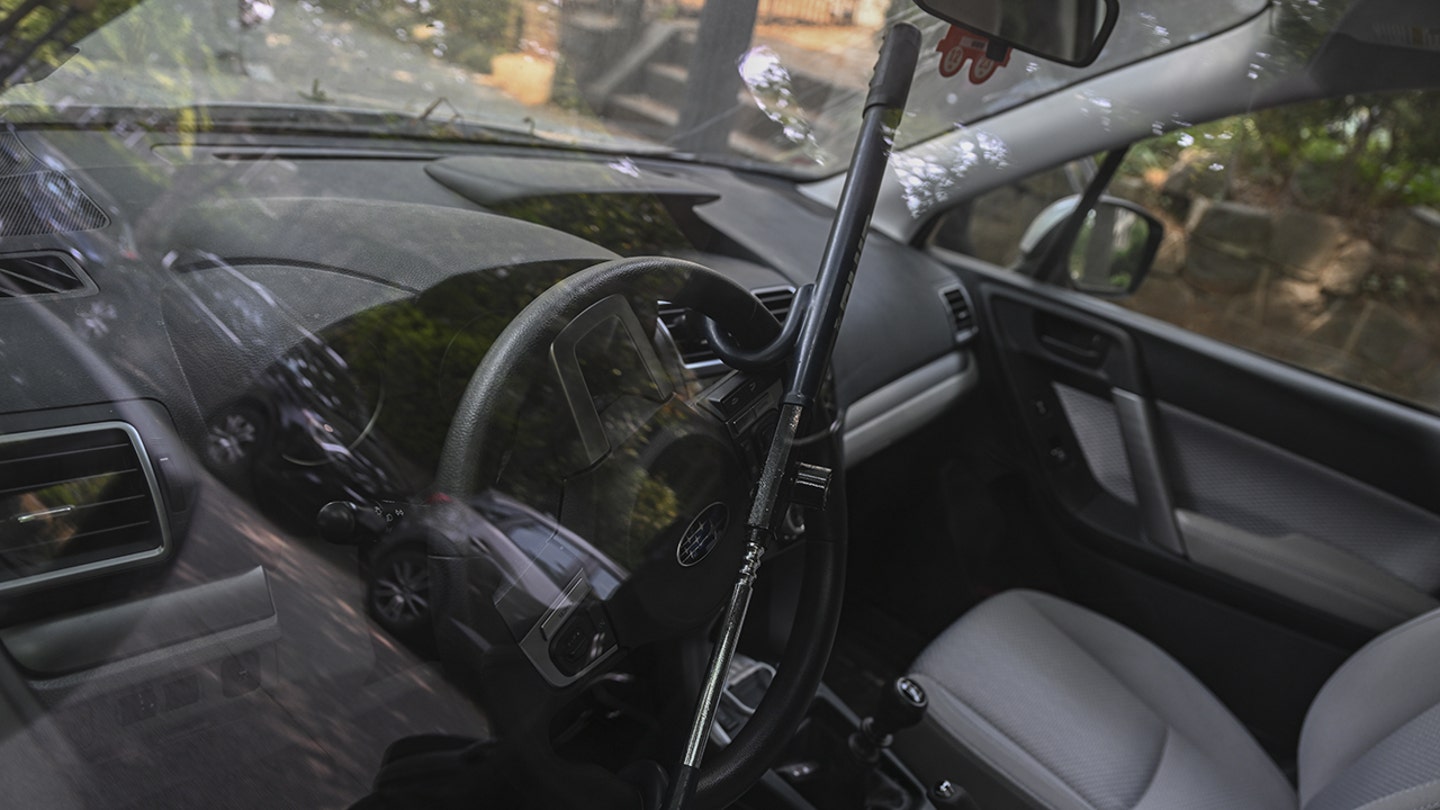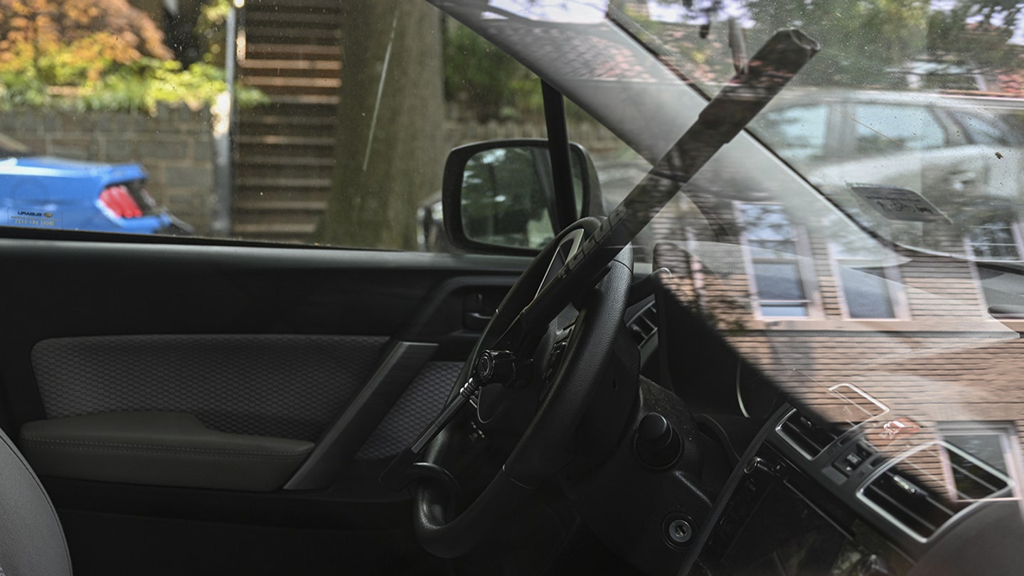 A steering lock of a automobile in Washington, DC, in June 2023. (Celal Gunes/Anadolu Company through Getty Photos)