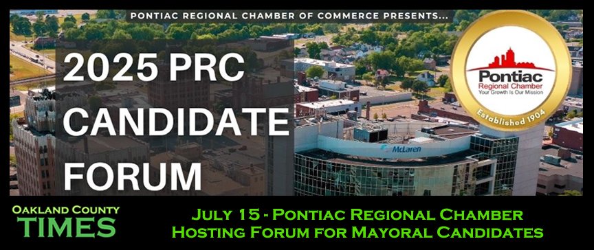 Pontiac, Mi – The Pontiac Regional Chamber of Commerce is happy to ask you to our PRC 2025 Candidate Discussion board! Take part on July 15, 2025, at 6 pm within the Auburn Hills Marriott Pontiac for an interesting night centered on the problems which are most essential for our enterprise. That is your likelihood to listen to instantly from the mayors and to achieve perception into their visions for the way forward for our metropolis. Whether or not you’re a enterprise proprietor, potential entrepreneur or a member of the neighborhood, your voice is essential!