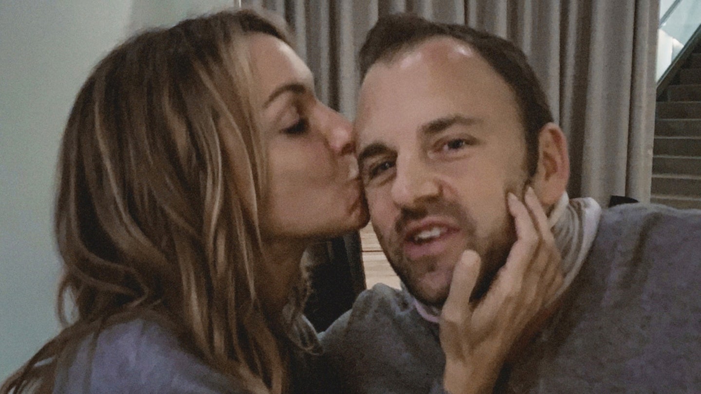 Karen learn John O’Keefe a kiss on the aspect of his head in an undated picture. (Courtesy of Karen Learn)