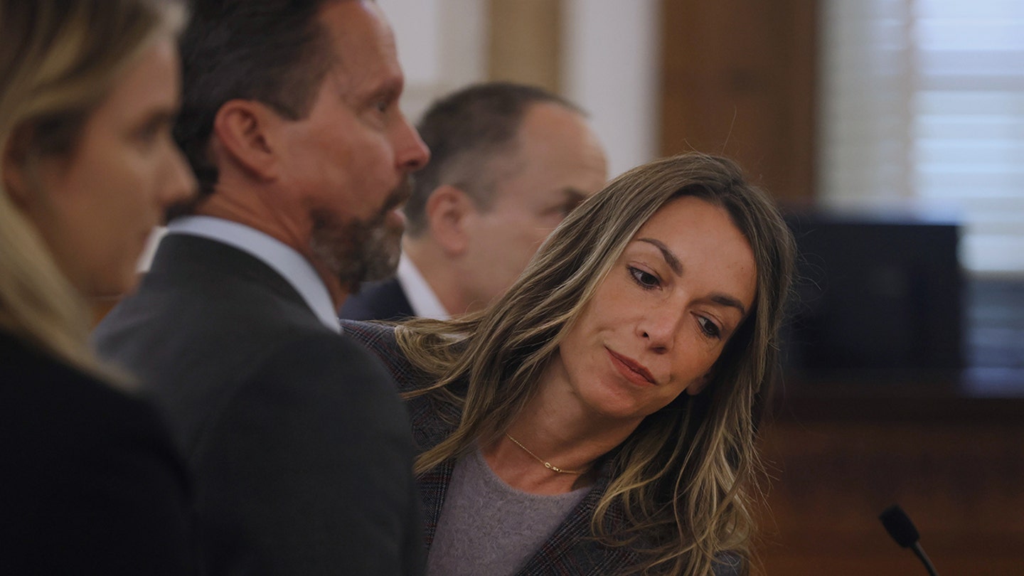 Karen Learn seems together with her legal professionals through the first day of the jury alternative on the recording of Learn at Norfolk Superior Courtroom on Tuesday 1 April 2025 in Dedham, Mass. (Nancy Lane/The Boston Herald through AP, Pool)