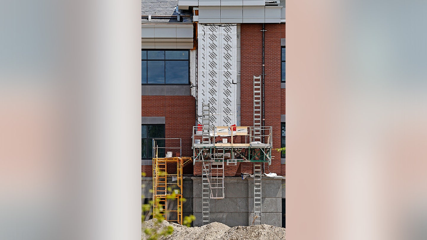 The areas on both aspect of the brand new entrance door of the Quincy Police Division await the set up of two controversial statues on Monday, June 2, 2025. (Greg Derr/The Patriot Ledger / USA TODAY NETWORK by way of Imagn Photos)