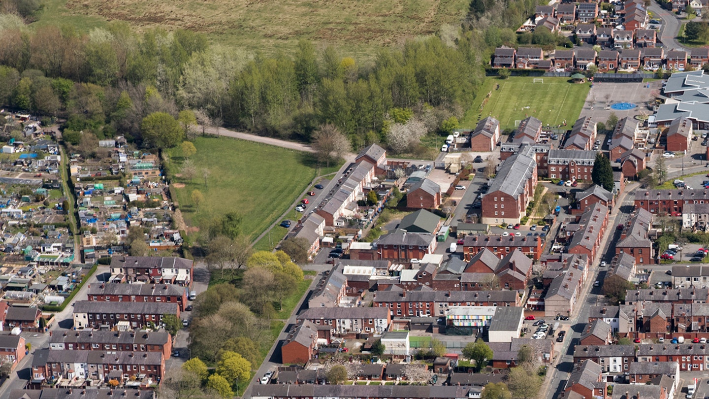 A neighborhood in Wigan, Higher Manchester, in 2021. (Historic Archives of England / Heritage Photos)