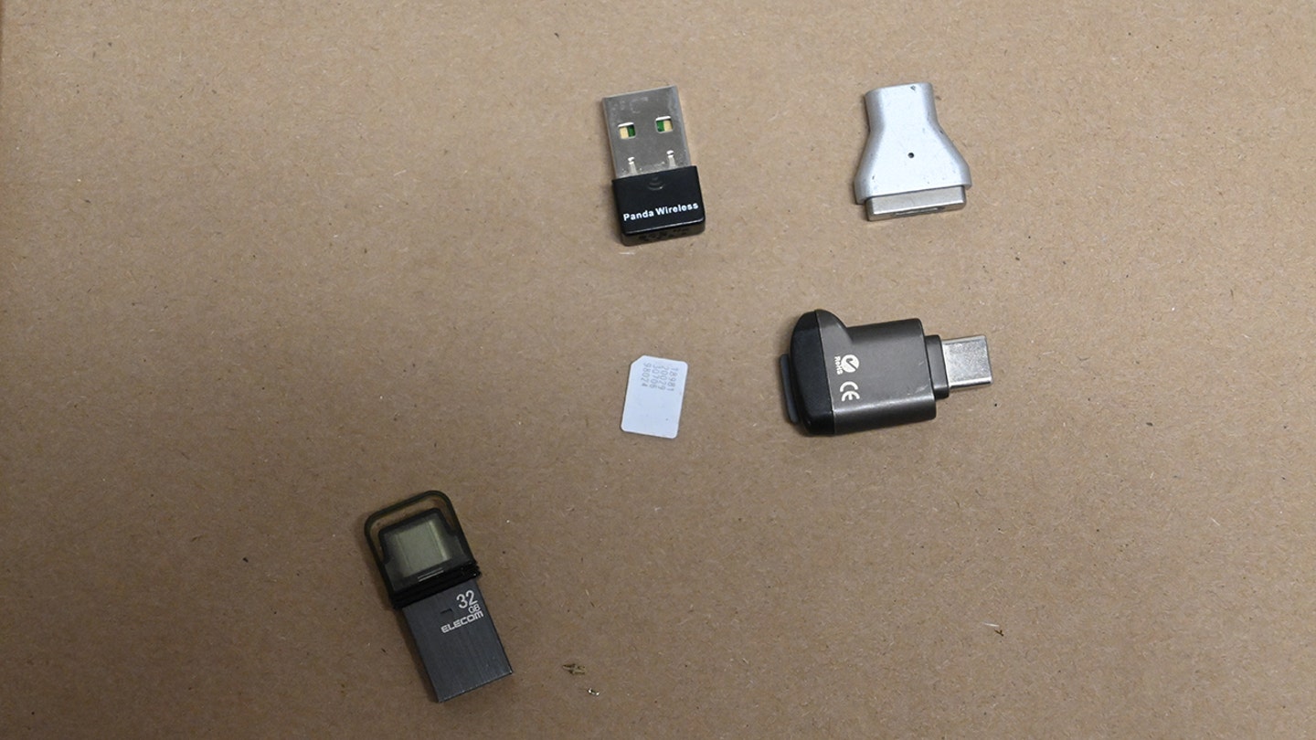 Proof collected after Luigi Mangione’s arrest and introduced by the Manhattan district lawyer at a suppression listening to is proven right here. Pictured: USB. (Manhattan District Lawyer’s Workplace)