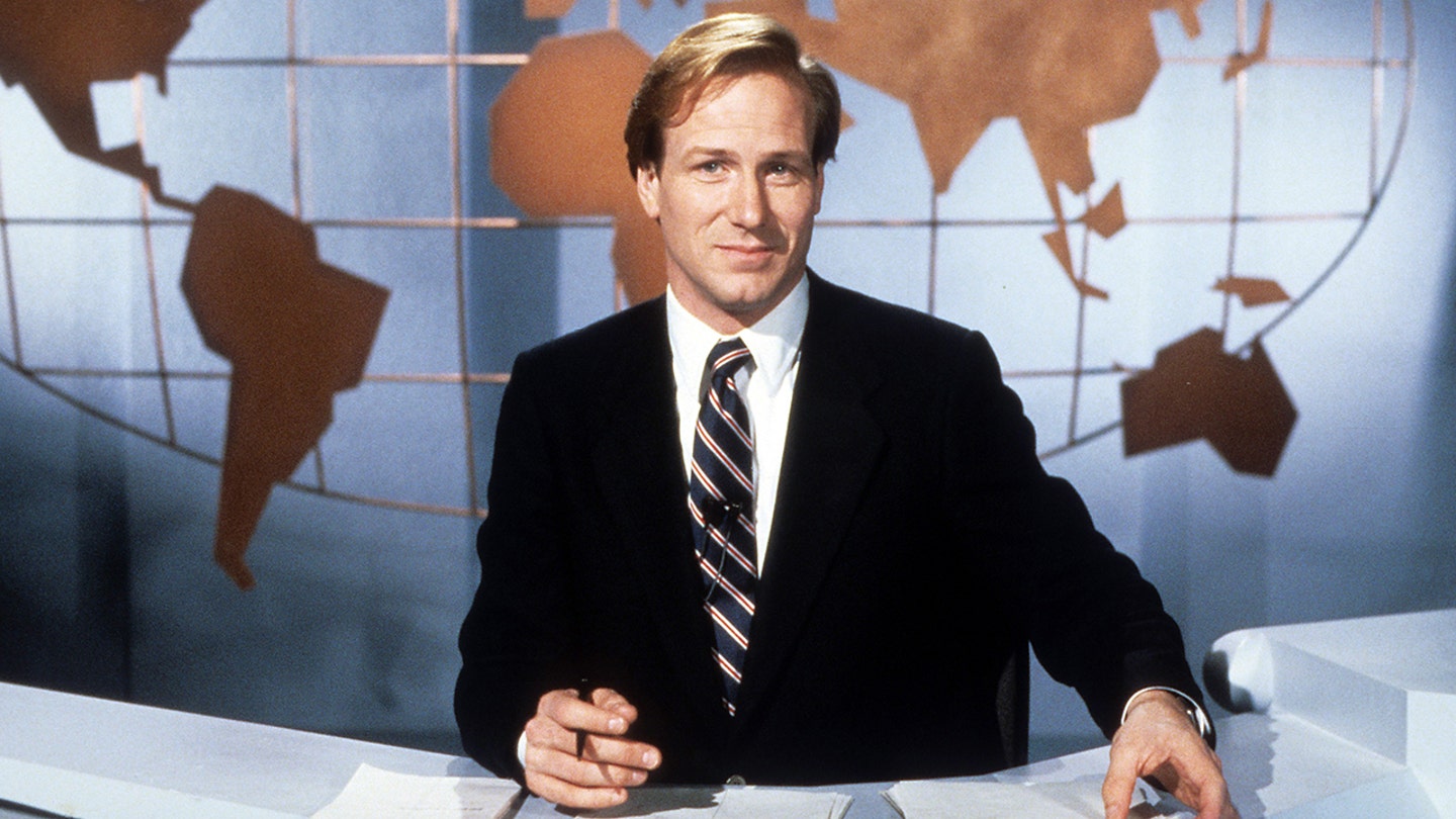 William Damage as a newsreader in a scene from the movie ‘Broadcast Information’ from 1987. The actor died in 2022 on the age of 71. (America Movies/Getty Pictures)