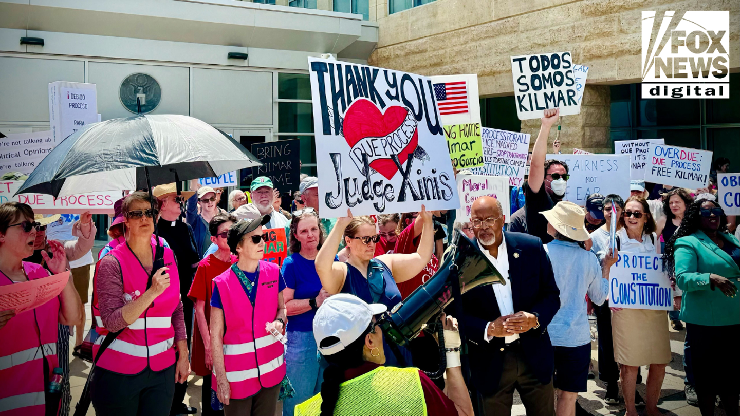 Demonstrants collect outdoors the American courtroom in Greenbelt, Maryland, to protest in opposition to the detention of Kilmar Abrego Garcia, who was deported to El Salvador in March. (Breanne Deppisch/Fox Information Digital)