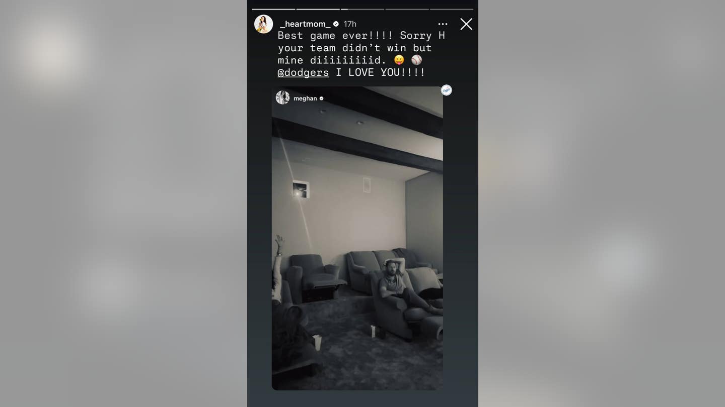 The Alliance of Mothers founder shared Markle’s newest clip on her personal Instagram Story, writing, “Greatest recreation ever!!! Sorry H, your staff did not win, however mine diiiiiiiiiiid. @dodgers I LOVE YOU!!!!”