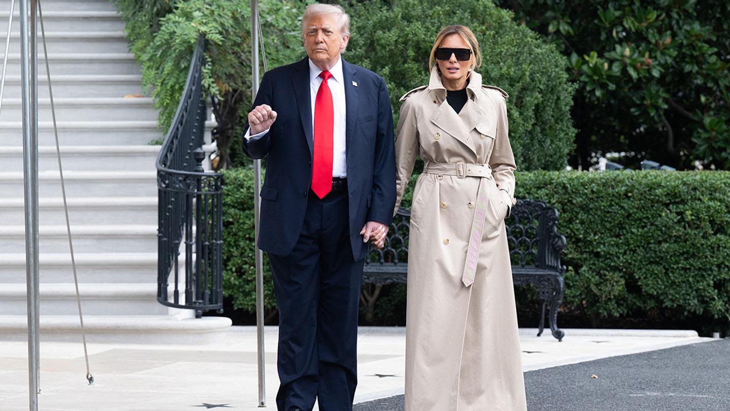 Melania wore the identical brown coat and kaki pants as she and President Trump went to the Navy One -Helikopter, who introduced them to the Air Power to return to the USA.
