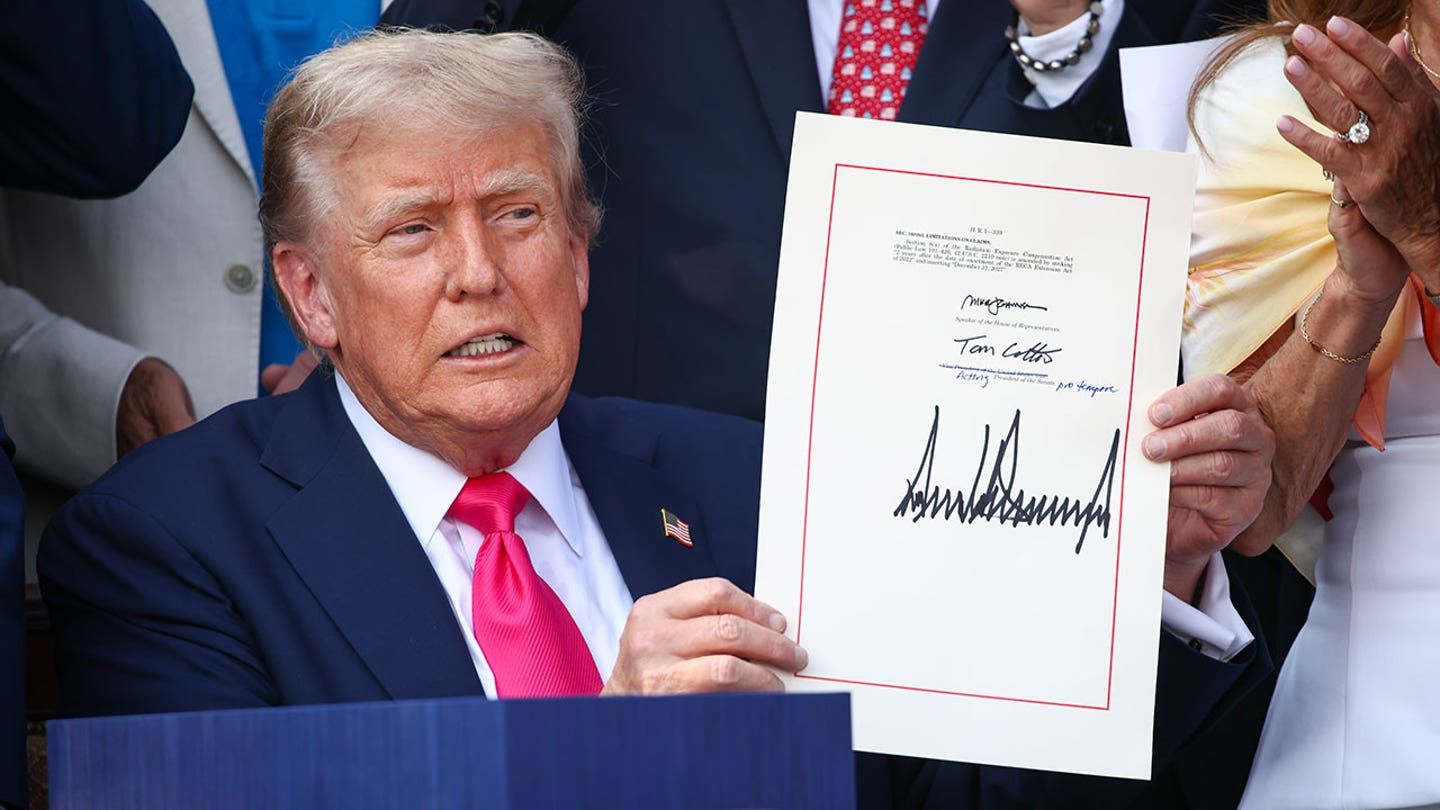 US President Donald Trump signed the One, Massive Stunning Invoice Act throughout an Independence Day celebration on July 4, 2025. (Samuel Corum/Getty Photographs/Getty Photographs)