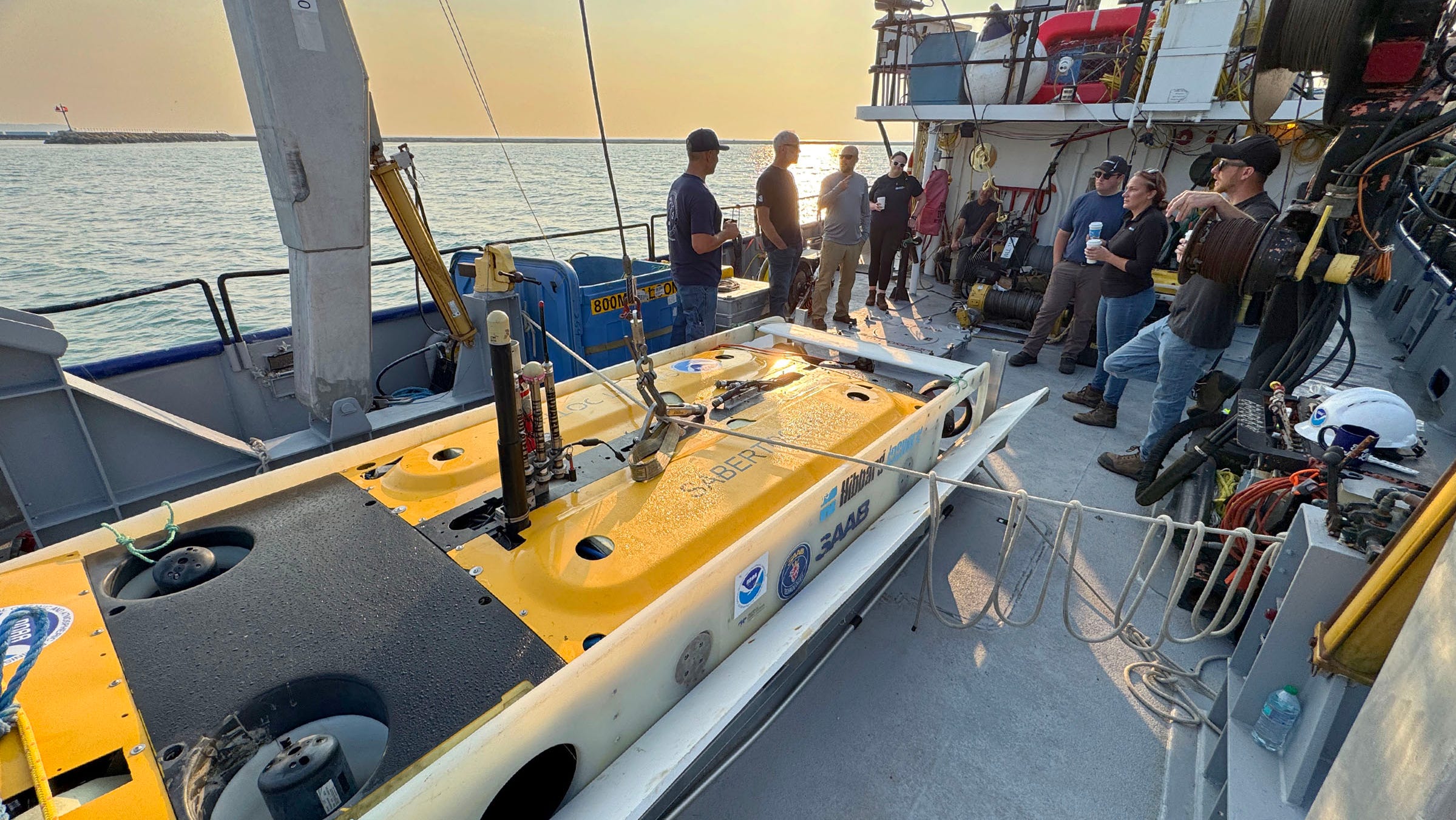 A crew from NOAA and the Nice Lakes Environmental Analysis laboratory searches for shipwrecks on the backside of Lake Michigan