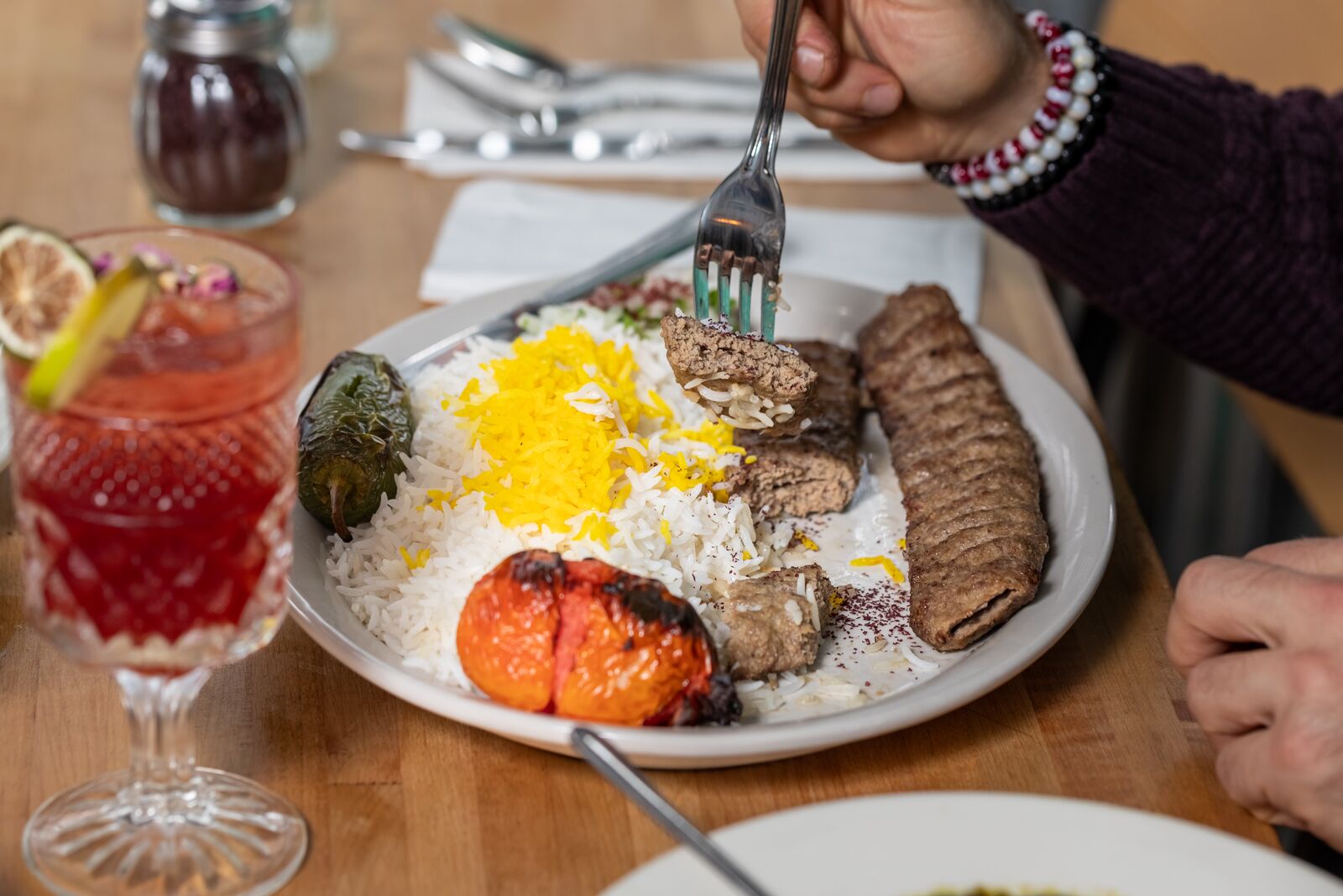 The pair obtained a liquor license after they took over the restaurant. Consistent with the give attention to Center Jap delicacies, their full bar options Teliani’s Georgian wines, Sarbast beer from Uzbekistan and Golden Arak Ramallah from the West Financial institution. 4 cocktails deftly mix spirits with traditional flavors: together with the Pomegranate Ember, which mixes vodka and ginger liqueur with pomegranate and lime juice, and the Persian margarita, which mixes tequila, hibiscus and agave, and a sumac-encrusted rim. Thematic mocktails with pomegranate juice or rosehip infusion are additionally out there.