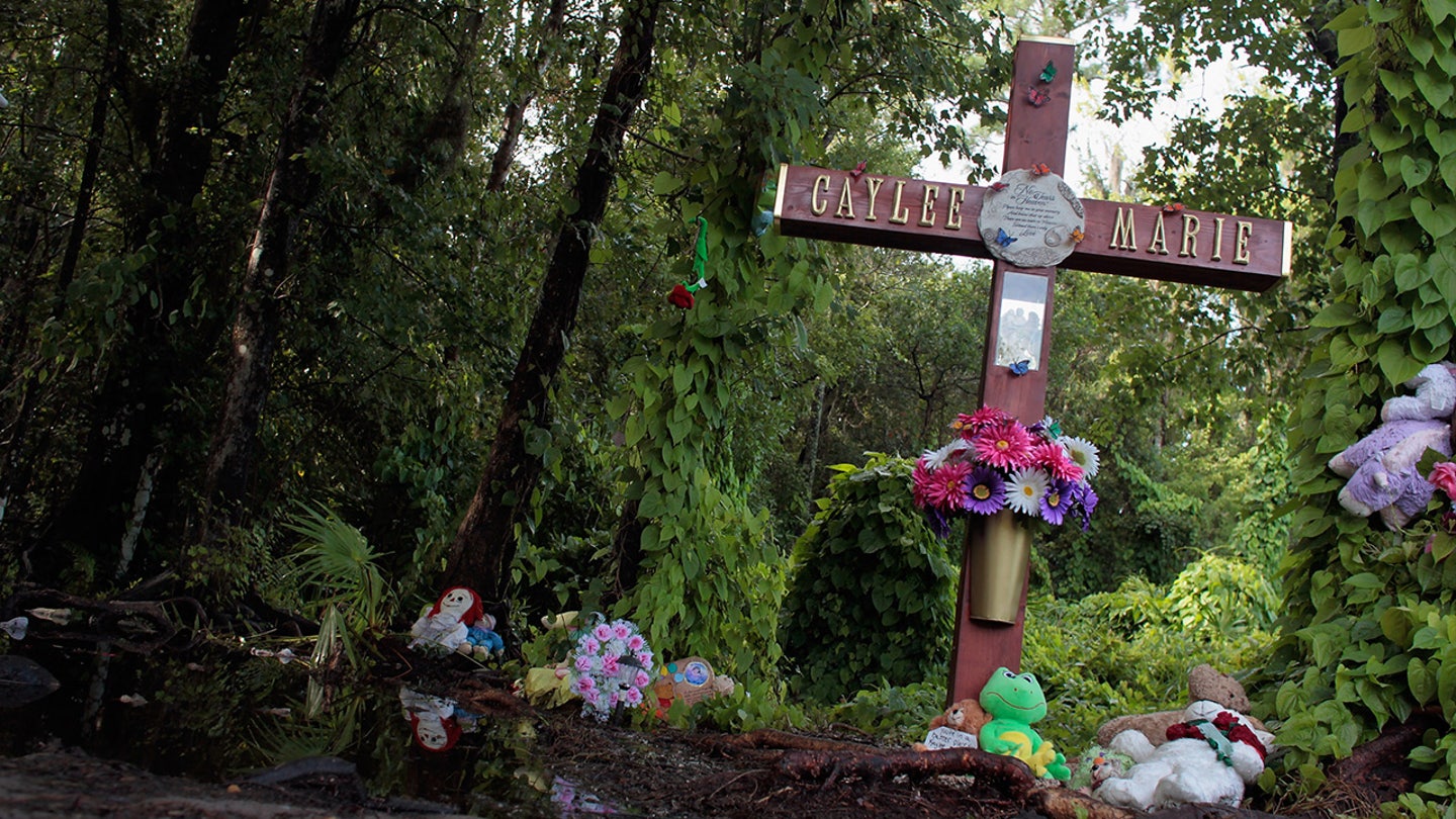 A cross has been arrange within the Caylee Anthony Memorial that’s positioned within the space the place the stays of the 2-year-old had been discovered on July 16, 2011 in Orlando, Florida. (Joe Raedle)