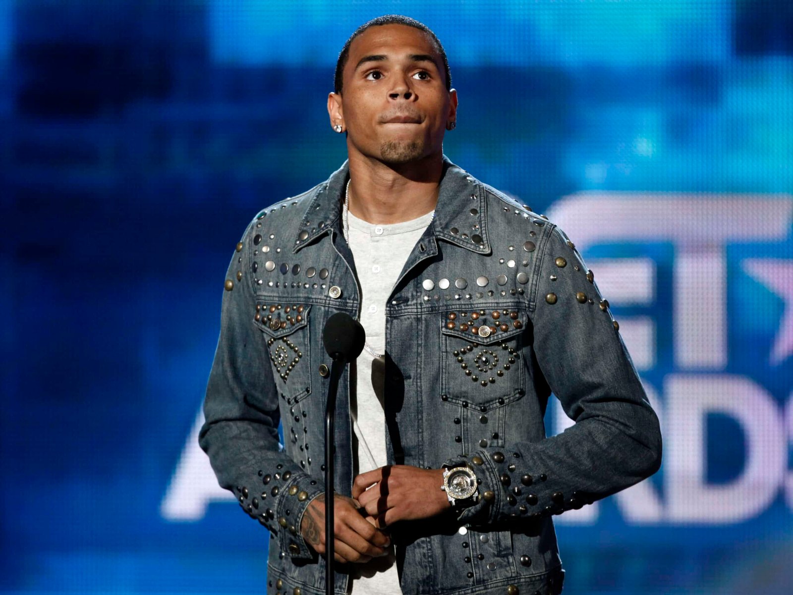 Singer Chris Brown accepts the AOL fan demonium entry through the Guess Awards on Sunday 27 June 2010 in Los Angeles. Picture: AP Photograph/Matt Sayles