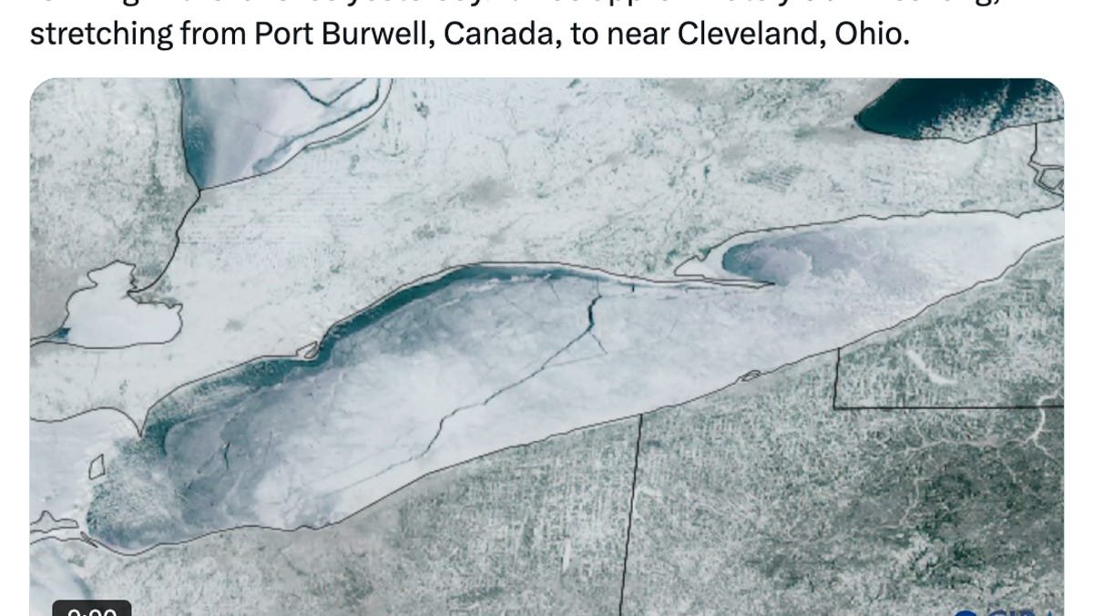 “Perhaps the ice actually IS the one factor it is on #LakeErie!”, stated the NOAA Satellites account on X. “NOAAs #GOESOost (#GOES19) satellite tv for pc captured an enormous break within the lake’s ice yesterday. It was about 80 miles lengthy and stretched from Port Burwell, Canada, to close Cleveland, Ohio.
