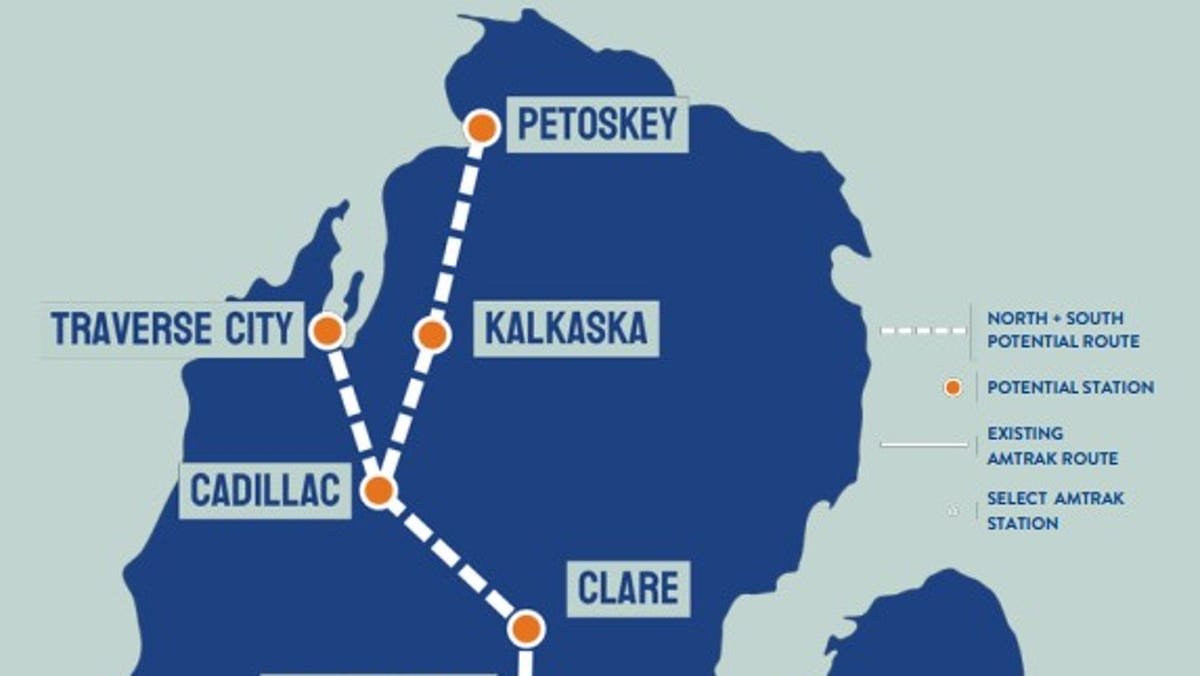 The North + South Passenger Rail Mission is a potential railway line connecting cities in southeastern and central Michigan with cities in northwest Michigan. Just lately, in 2025-2026, the undertaking group plans to finish a brand new planning research initiated by Groundwork Center for Resilient Communities to supply extra perception into the potential route, monitor situations, service choices, prices and an implementation plan.