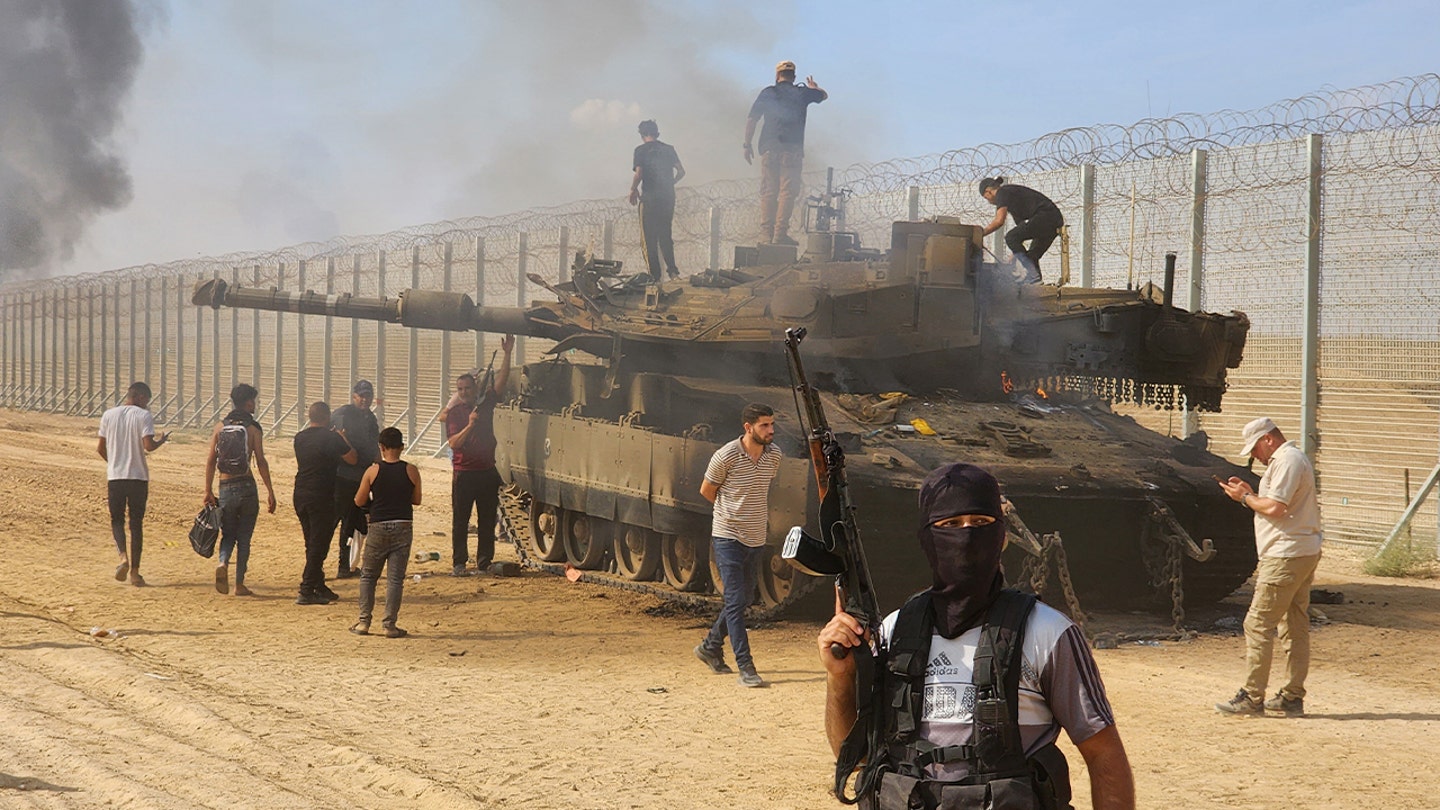 Hamas fighters destroy a tank of Israeli troops in Gaza metropolis on October 7, 2023. (Hani Eenhaer / Anadolu Company by way of Getty Photos / Getty Photos)