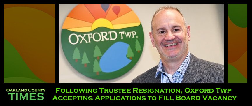 Following the resignation of the trustee, Oxford Township will settle for purposes to fill the emptiness on the board (Oxford Township, January 15, 2026) Oxford, MI...