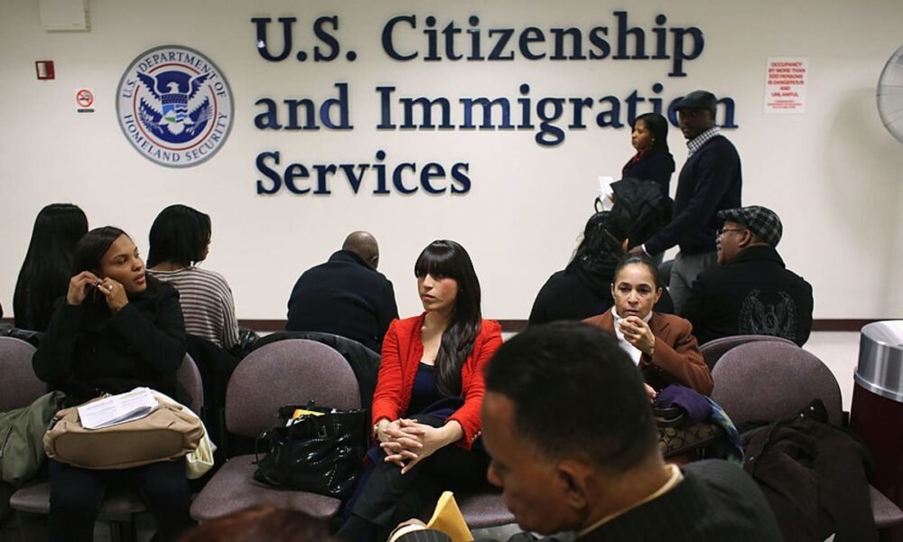 article FILE-Immigrants await their citizenship interviews on the U.S. Citizenship and Immigration Companies (USCIS), a district workplace in New York Metropolis. (Photograph by John Moore/Getty Pictures)...