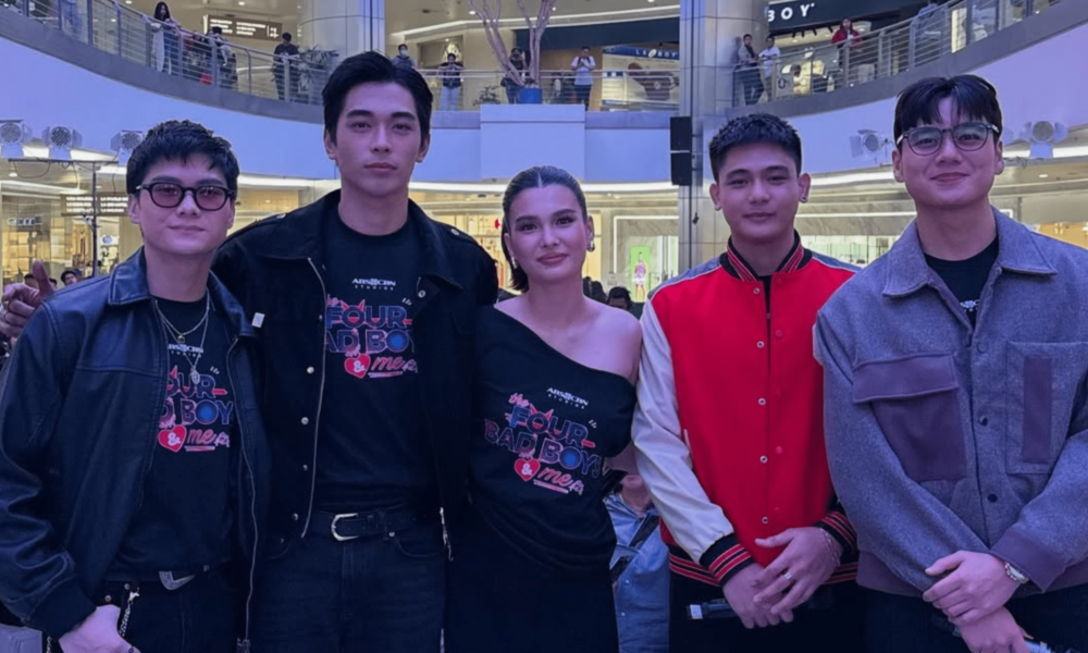(From the left) Harvey Bautista, BGYO’s Gelo Rivera, Anji Salvacion, Dustine Mayores and River Joseph through the premiere of “The 4 Unhealthy Boys and Me”. Picture:...