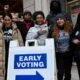 article FILE – Youth activist Miracle Boyd (middle with hand on chest) stands with different activists exterior a polling place after voting for the primary time...