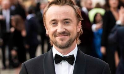 Tom Felton poses for photographers on arrival in the course of the Olivier Awards in London, Sunday 10 April 2022. Picture: Vianey Le Caer/Invision/AP New York...