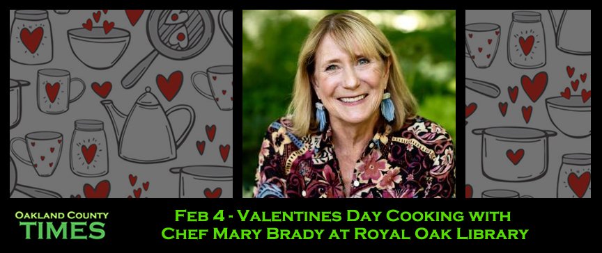 February 4 – Valentine’s Day cooking with Chef Mary Brady on the Royal Oak Library Royal Oak, MI – Be part of our particular visitor, Mary...