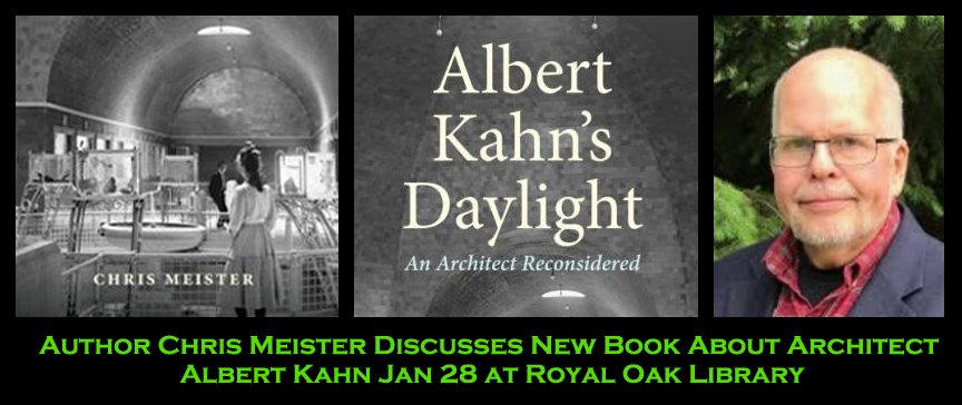 Creator Chris Meister will talk about new e book about architect Albert Kahn on January 28 on the Royal Oak Library Royal Oak, MI – Be...